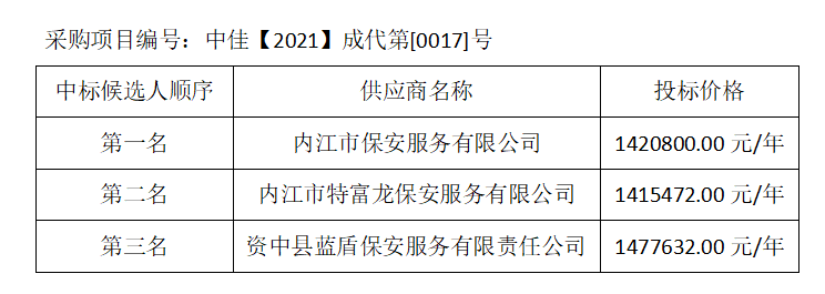 內(nèi)江市水務有限責任公司保安服務項目評標結(jié)果公示