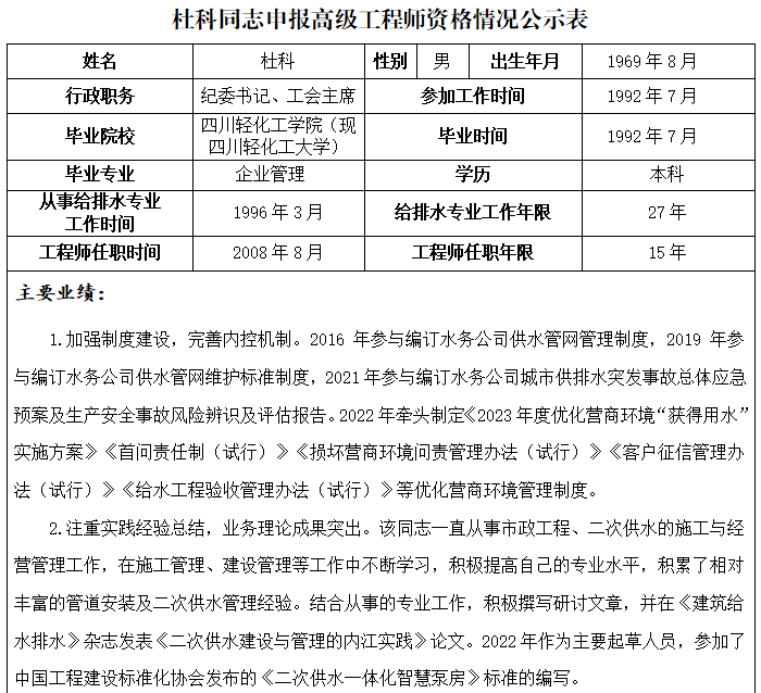 附件:杜科同志申報高級工程師資格情況公示表