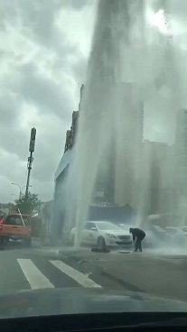 搶修人員到達(dá)現(xiàn)場后,發(fā)現(xiàn)消火栓已被撞斷,大量自來水噴涌而出,形成10多米高的水柱,附近道路積水嚴(yán)重,對附近學(xué)校人員的出行造成嚴(yán)重影響。搶修隊(duì)員在渾濁的閘閥井里摸索著關(guān)閉閥門,及時(shí)排除安全隱患,經(jīng)過近一個(gè)小時(shí)的搶修,11時(shí)許,完成搶修,恢復(fù)供水。